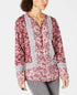 Blusa feminina estampada de manga comprida e decote em V, tamanho pequeno, vermelha, estilo & co