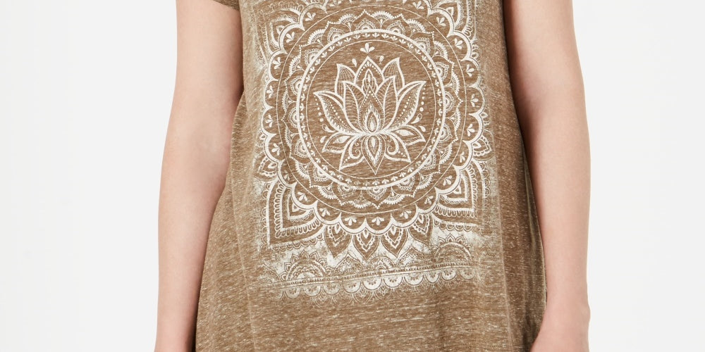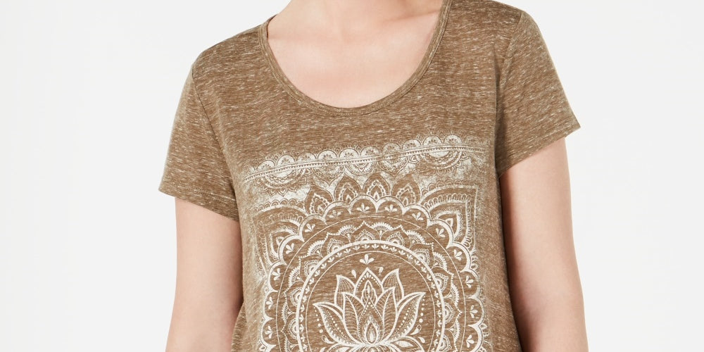 Camiseta feminina estampada de manga curta e gola redonda estilo & co., marrom, tamanho médio