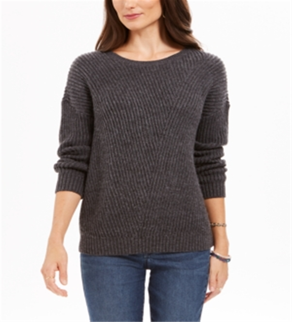 Suéter feminino canelado com ombros caídos, cinza, tamanho XX-G, estilo & Co
