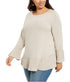 Suéter pulôver feminino com babados Style Co., estilo marrom, tamanho 1X