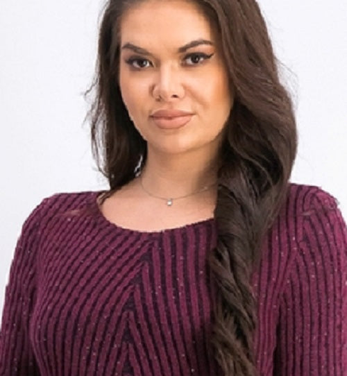 Ask a question about Suéter de malha canelada com bainha recortada estilo & co feminino vermelho escuro tamanho pequeno