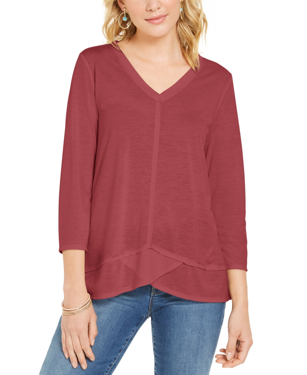 Estilo & Co Feminino Detalhe de Costura Alto Baixo Top Rosa Tamanho P