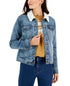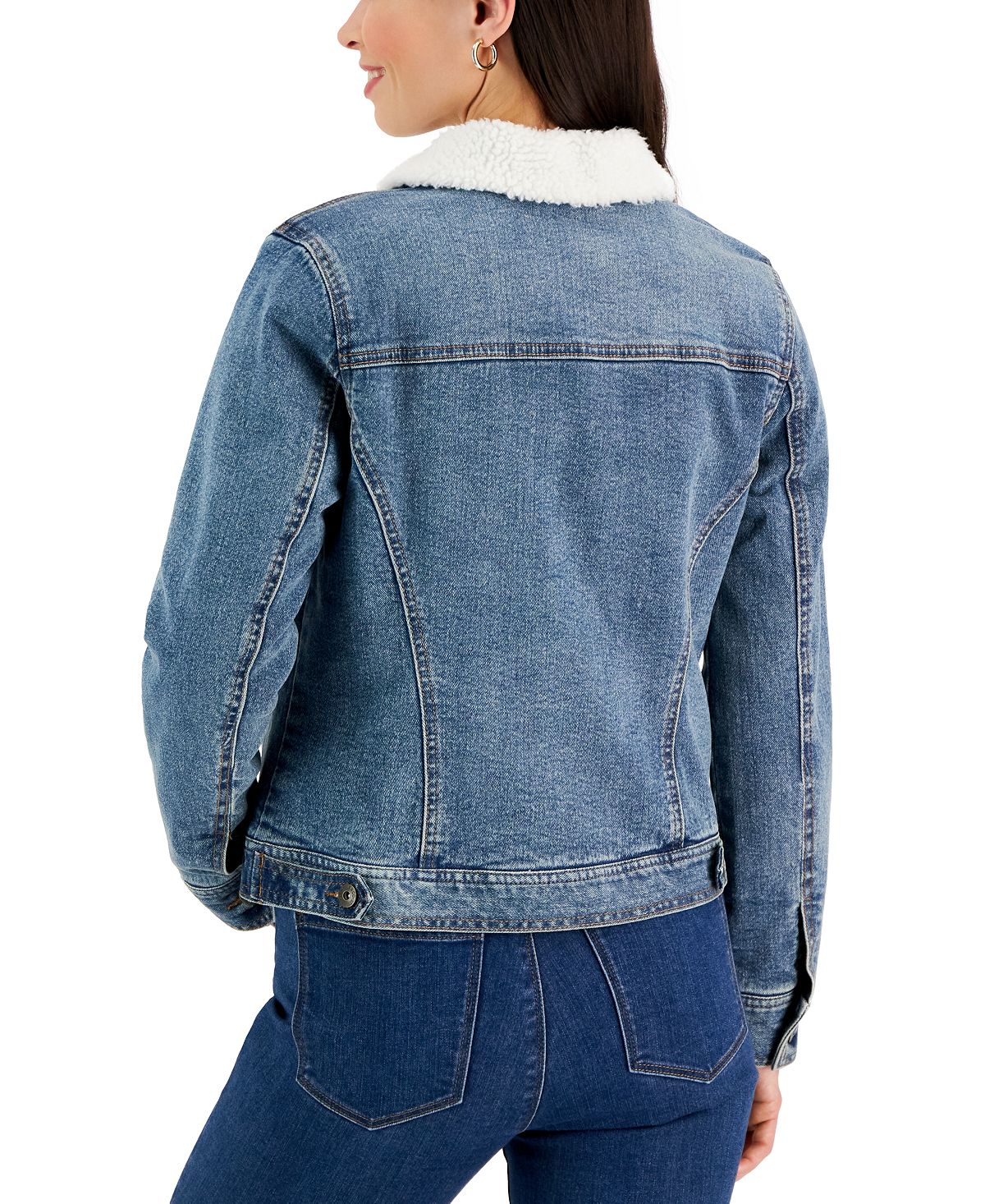 Jaqueta jeans feminina com gola sherpa estilo & co, azul, tamanho médio