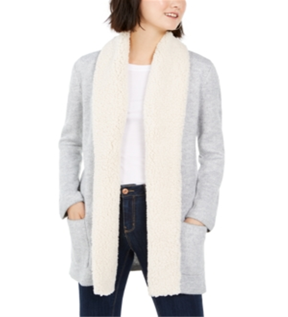 Cardigan feminino estilo & co com acabamento em sherpa e frente aberta, branco, tamanho GG