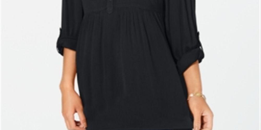 Blusa feminina estilo & co lisa com punho e gola, botões, para usar no trabalho, preta, tamanho pequeno grande