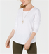 Blusa feminina lisa de manga comprida com decote em joia, estilo & co, branca, tamanho pequeno pequeno