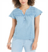 Blusa feminina com decote dividido, azul, tamanho XS, da Style & Co