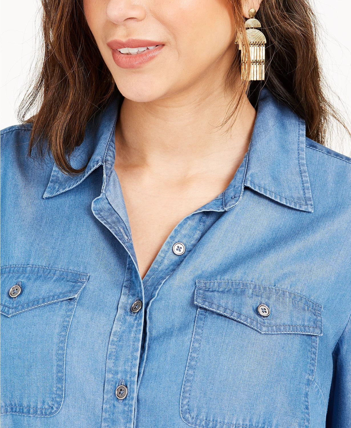 Túnica feminina estilo & co com mangas curtas, azul, tamanho grande