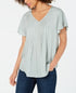 Blusa texturizada com mangas esvoaçantes Style & Co feminina, verde, tamanho pequeno