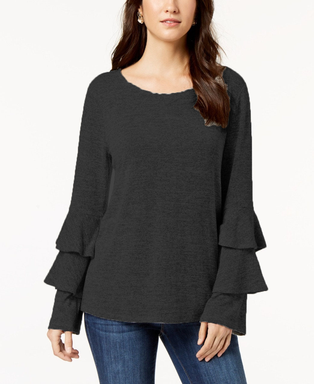 Blusa feminina estilo & co com mangas em camadas, preta, tamanho pequeno
