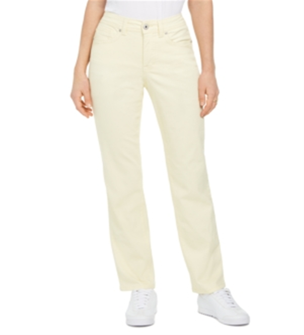 Jeans feminino estilo & co com controle de barriga e perna reta, amarelo, tamanho 14