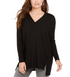 Túnica feminina com decote em V, preta, tamanho pequeno M, da Style & Co
