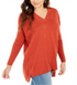 Suéter túnica feminino com decote em V estilo & co, laranja, tamanho extrapequeno
