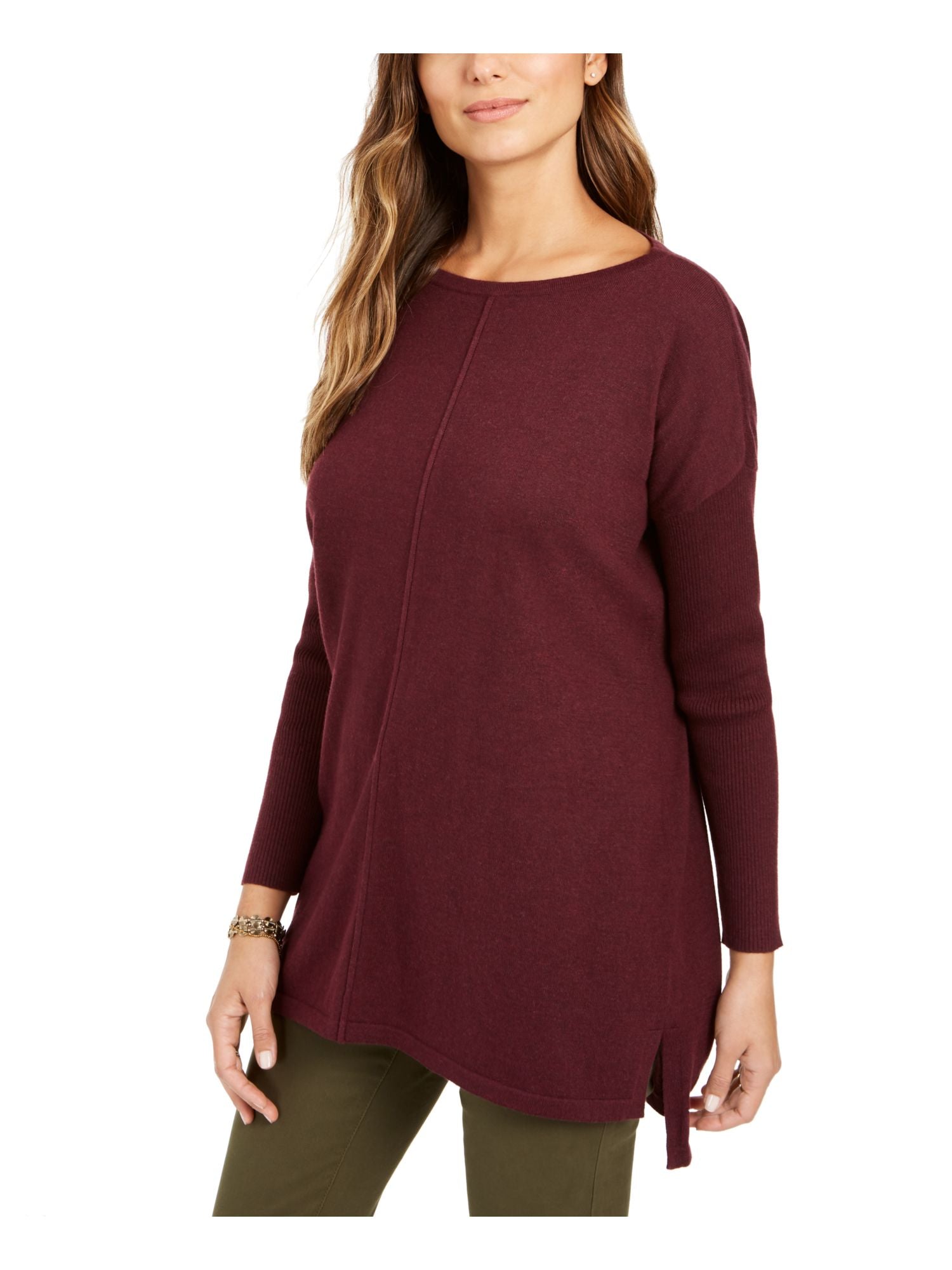 Estilo & Co. Suéter túnica feminino com bainha ventilada e manga comprida para usar no trabalho, tamanho pequeno, extragrande