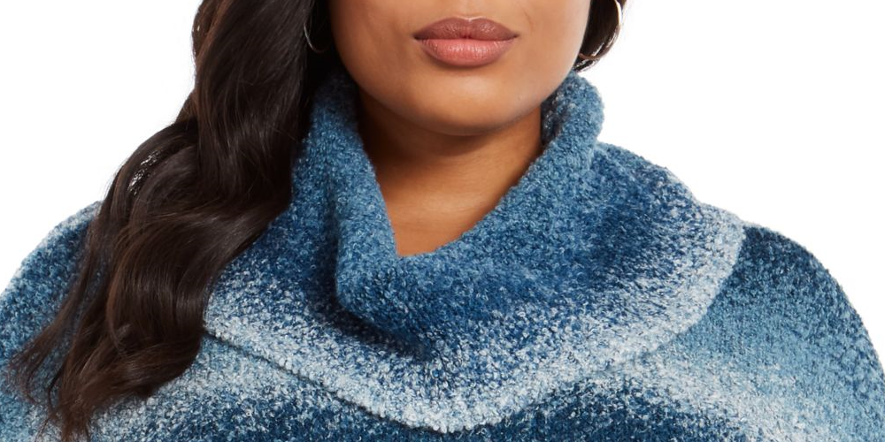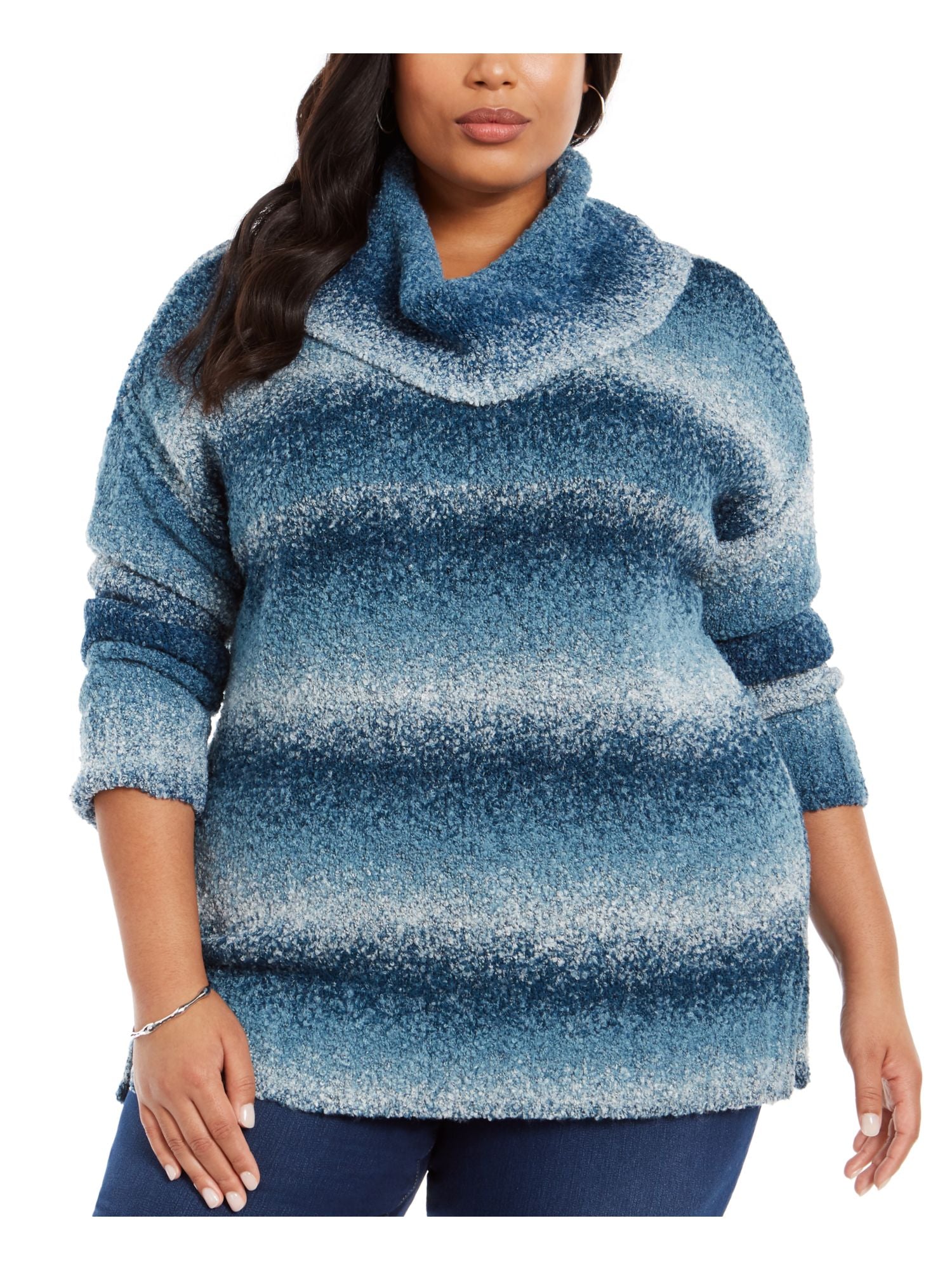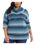 Blusa feminina estilo & co ombré manga comprida gola alta azul-petróleo tamanho 3X