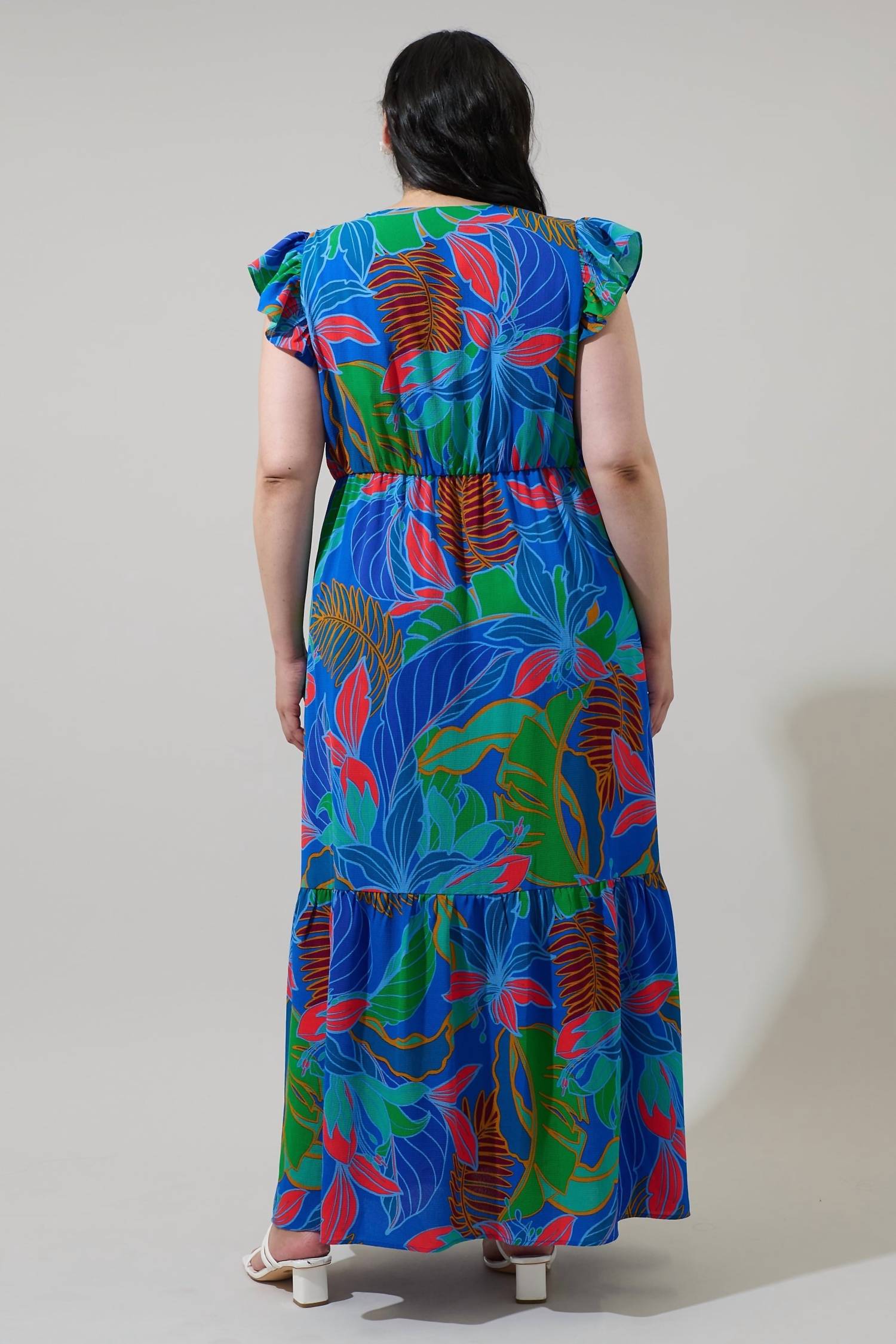 Sugarlips - Vestido longo com botões e babados Malton Tropical Evianna Curve
