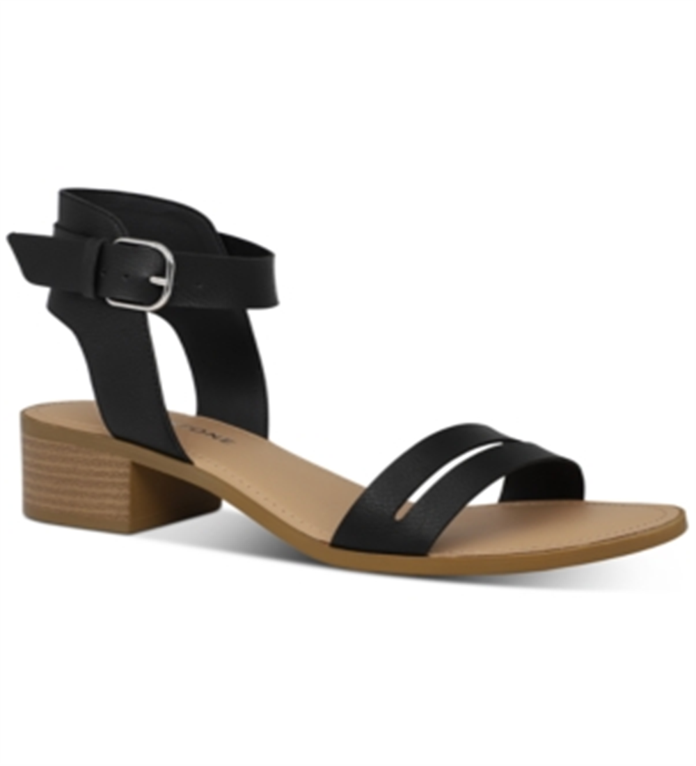 Sandálias femininas Sun Stone Alectap com tira no tornozelo e salto alto, pretas, tamanho 6,5