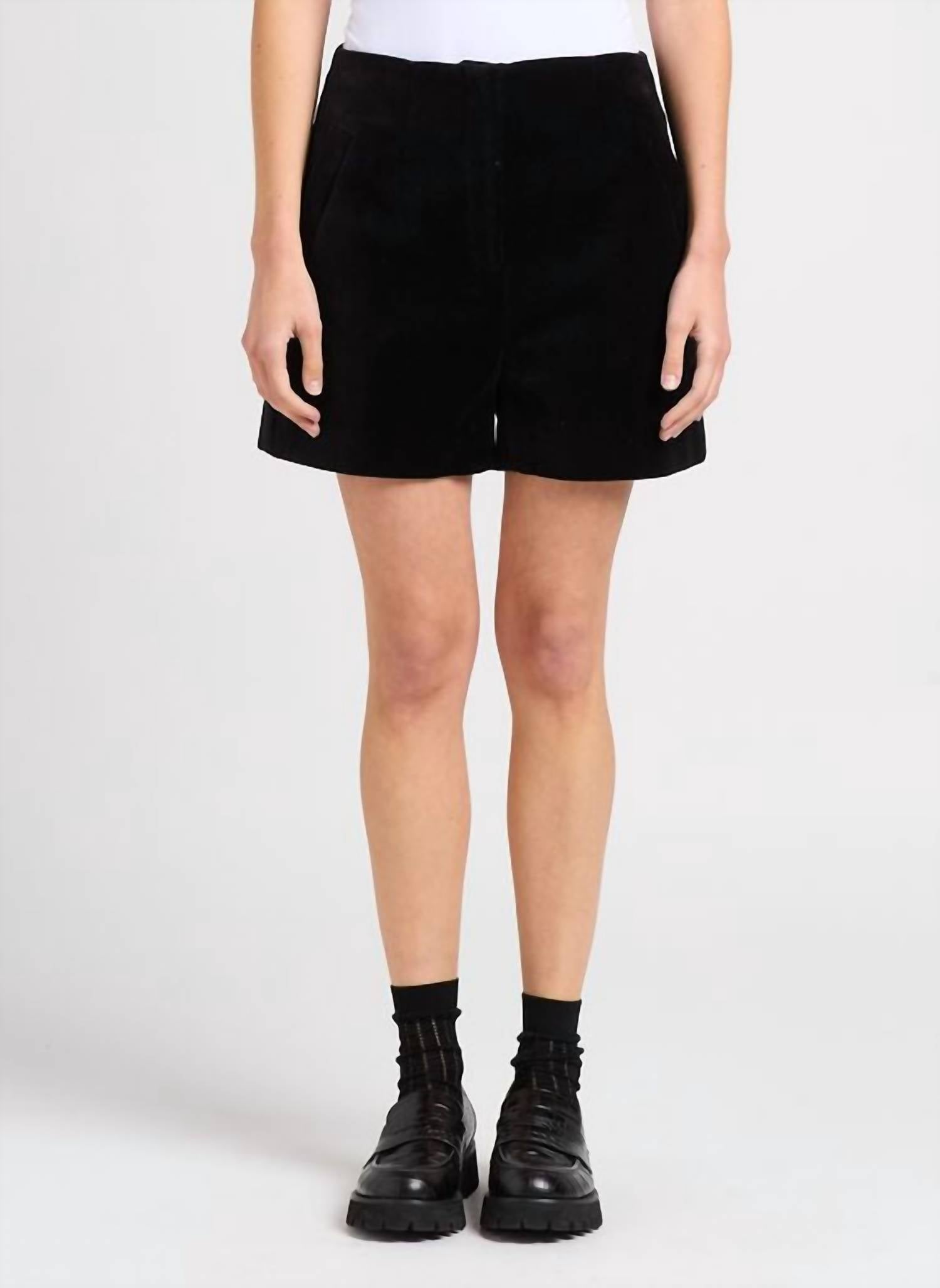 Elevate your party look with the Billy Short by Suncoo, crafted from luxurious velvet in a striking noir hue. Made from 100% cotton, these high-waist shorts offer a minimalist appeal perfect for spring evenings. Featuring a solid pattern, it comes equipped with pockets and a convenient zip closure. Ideal for a dinner party or Thanksgiving celebration.