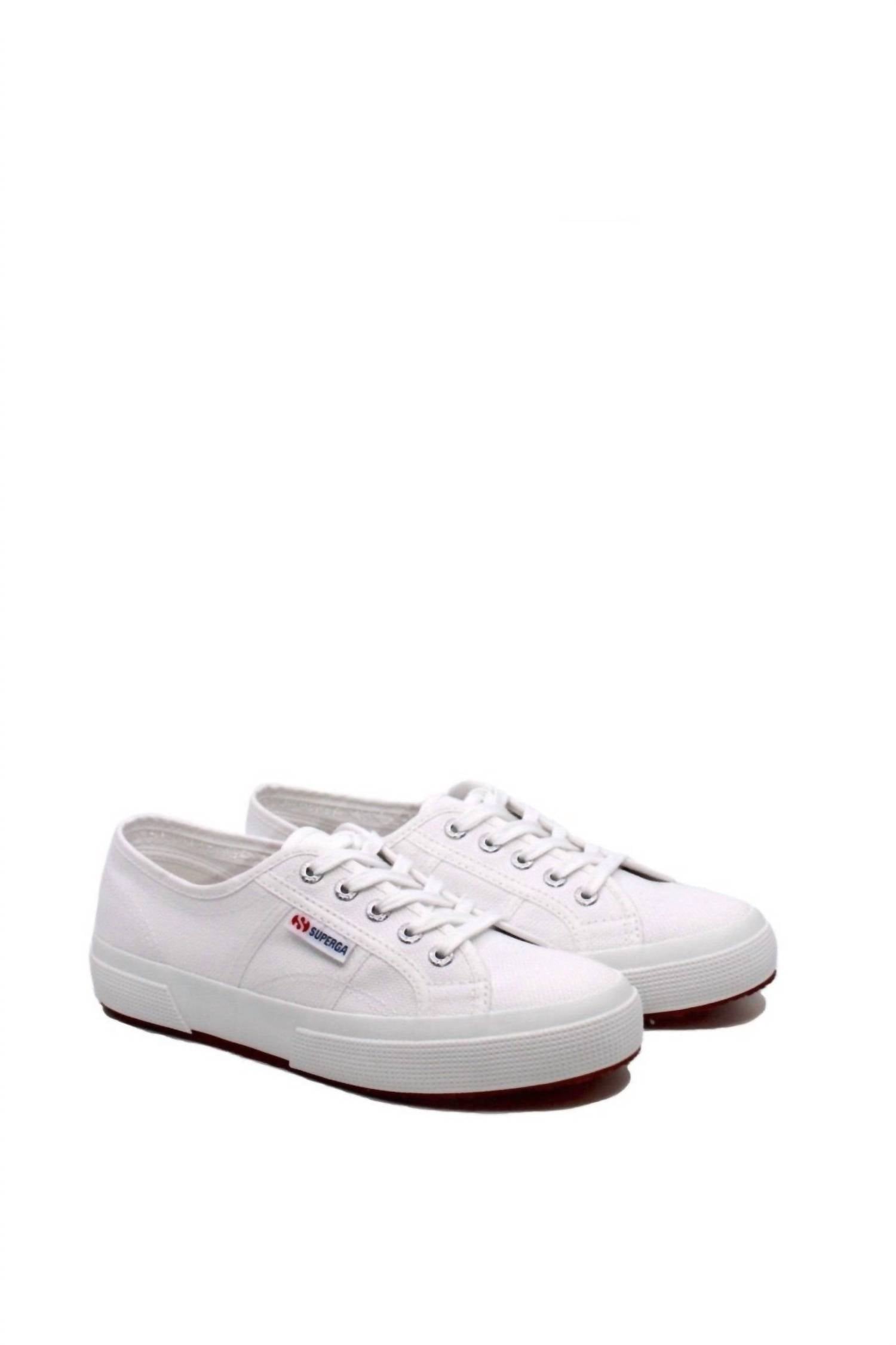 Quando moda e funcionalidade se unem perfeitamente. Entre no estilo atemporal com o Tênis Feminino 2750 Cotu Classic da SUPERGA, um item essencial em branco refrescante. Confeccionado em algodão resistente, este tênis apresenta um fecho clássico com cadarço e bico arredondado, garantindo um ajuste ajustável e conforto duradouro. A plataforma de 2,5 cm em borracha natural com textura crepe não só adiciona um toque sutil, como também proporciona tração e durabilidade para uso o dia todo. Abrace a combinação perfeita de moda e funcionalidade com estes versáteis clássicos Cotu.