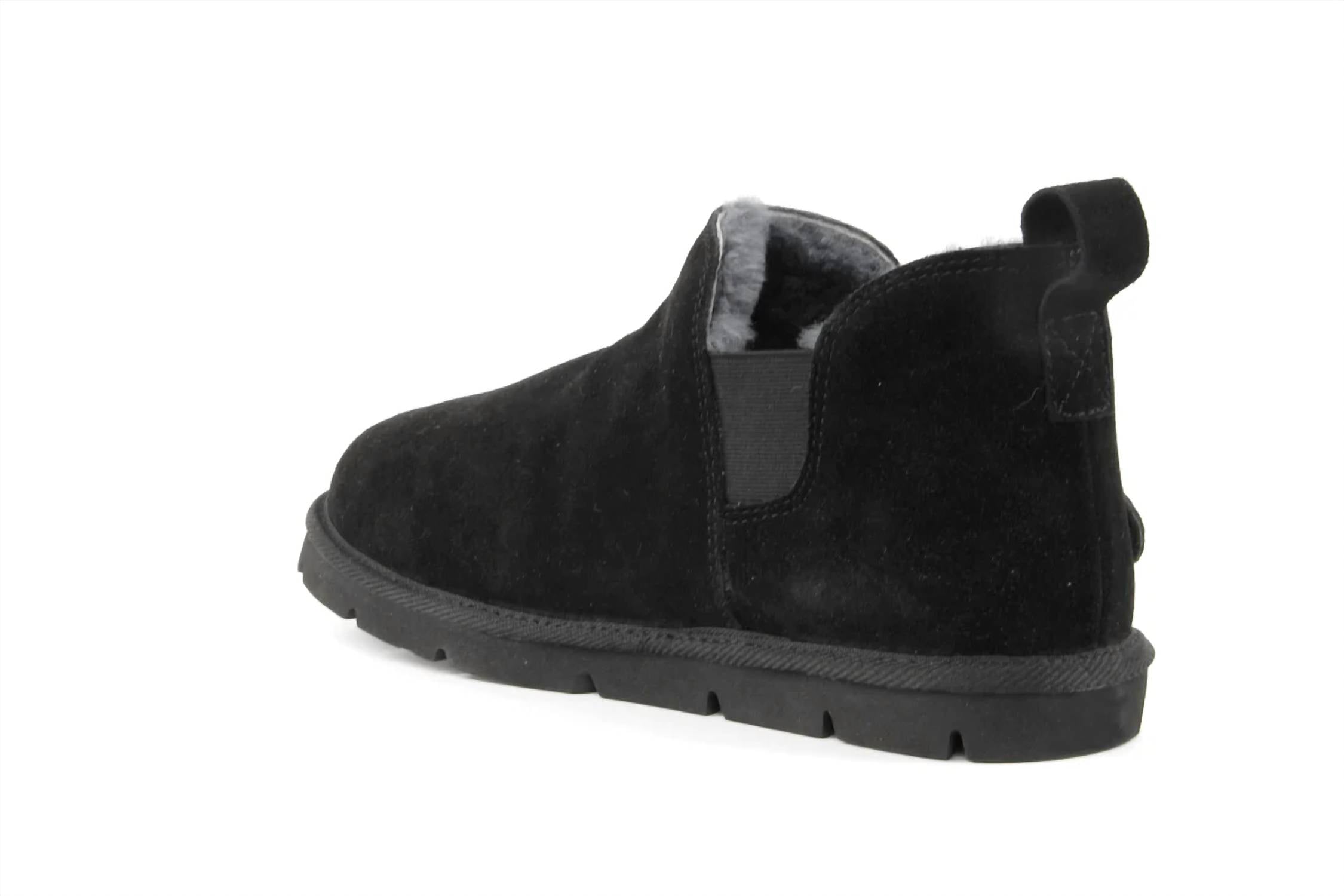 Experimente a combinação perfeita de estilo e conforto. Confeccionado em couro camurça 100% legítimo. Possui cano de 11,4 cm forrado com lã de carneiro genuína, garantindo aquecimento sem materiais sintéticos. O design inclui bico arredondado e salto plataforma baixo, com tira lateral ajustável para um ajuste personalizado. Solado durável em EVA Rubber-Lon com design Hyper-Flex Groove oferece excelente aderência e flexibilidade. Palmilhas removíveis e laváveis para conforto duradouro.