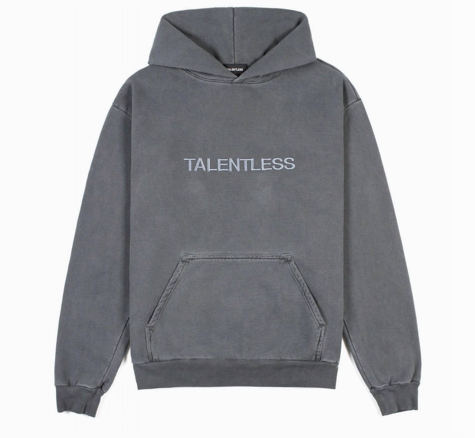 Introducing the Men's Circle Logo Embroidered Hoodie by Talentless, a stylish streetwear piece in steel grey that blends comfort and durability. Featuring long sleeves and a classic pull-on hooded design, this heavyweight hoodie is crafted from 100% cotton fleece with 500 GSM. Designed with stitched embroidered logos on the front and back, reinforced double-stitched seams, and sturdy metal grommets, it's perfect for staying cozy without overheating. Care: Machine wash, tumble dry.