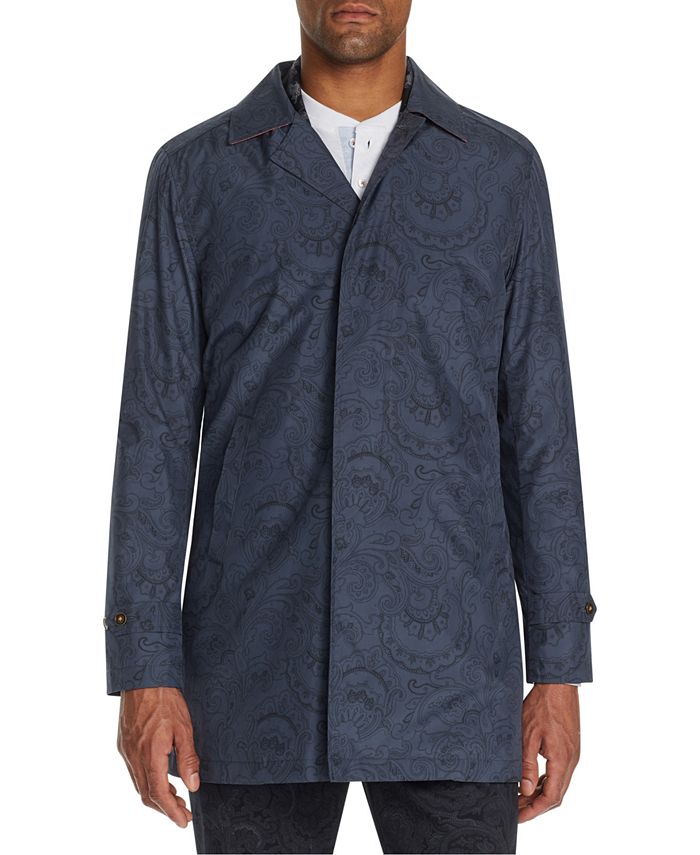 Tallia Masculino Slim Fit Paisley Dobrável Trench Coat Preto Tamanho XX-Grande