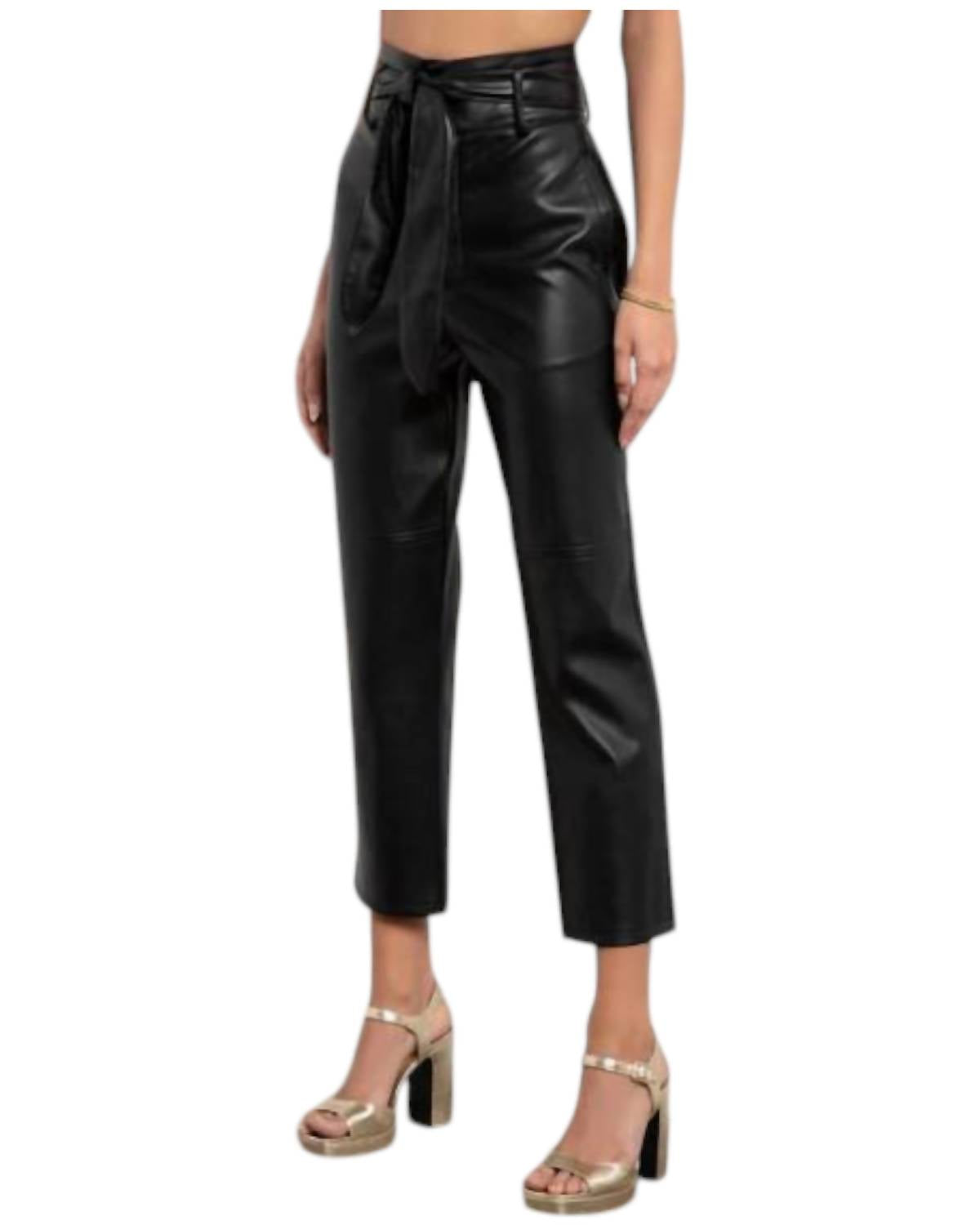 Atualize seu guarda-roupa com estas calças cropped, projetadas para unir sofisticação e praticidade. O corte sob medida garante o máximo conforto durante longos dias ou saídas à noite. Eleve seu guarda-roupa com a Calça Kimiko da Tart Collections, confeccionada em couro sintético preto elegante. Esta calça de cintura alta e perna reta possui um cinto ajustável e um design cropped moderno. Sua composição inclui uma camada externa 100% poliuretano e um forro 100% poliéster. Fechamento: Fecho de amarrar. Cuidados: Lavar à máquina com água fria, do avesso, ou optar pela lavagem a seco; evitar passar a ferro.