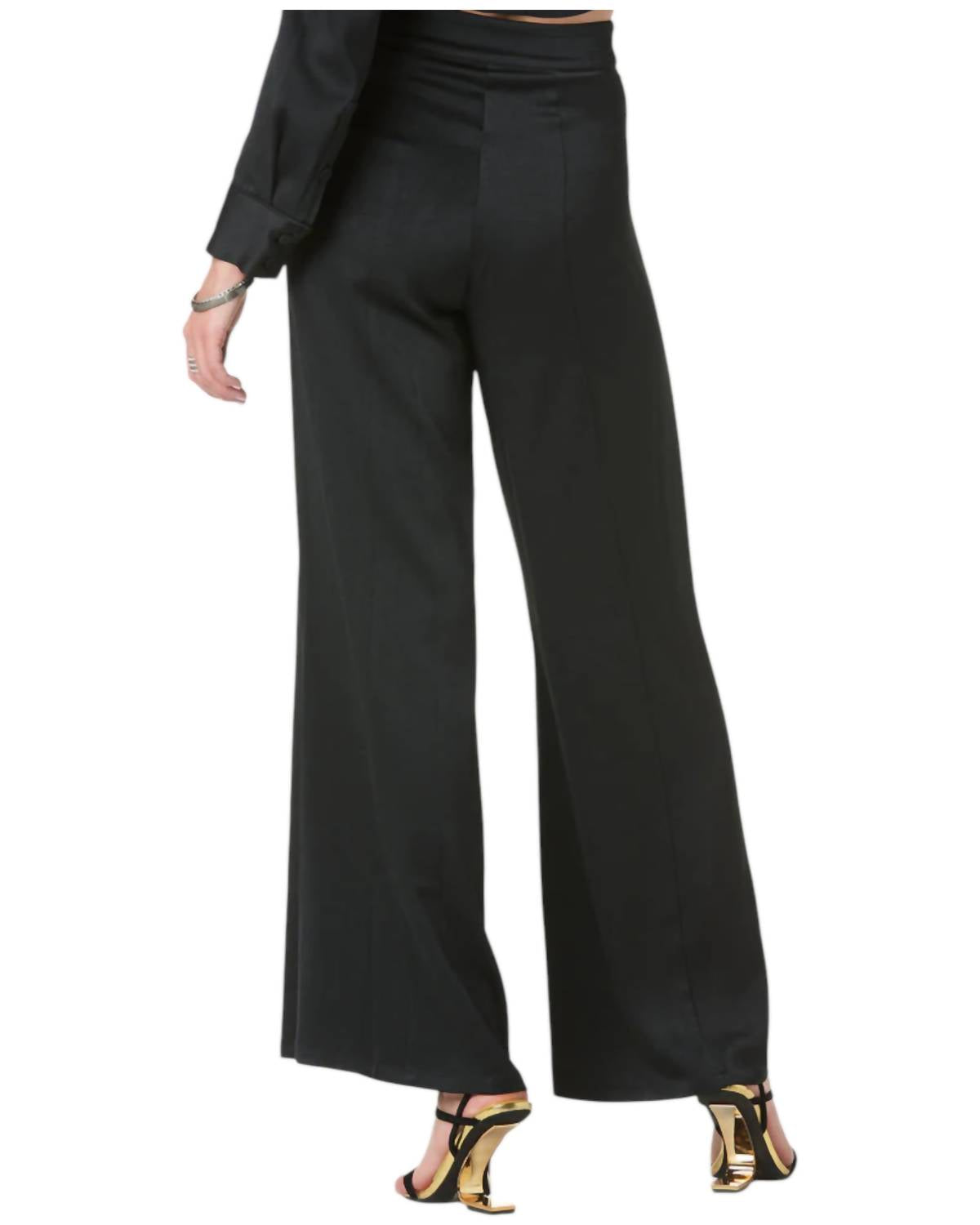 Descubra a Calça Padma da Tart Collections, uma adição chique ao seu guarda-roupa em preto clássico. Esta calça tem modelagem regular e pernas largas, com cintura alta de 28 cm e costura interna de 81 cm para um uso confortável. Confeccionada em uma mistura de 75% acetato e 25% poliéster, possui fecho de zíper e bolsos práticos. Para melhores resultados, esta calça deve ser lavada a seco.