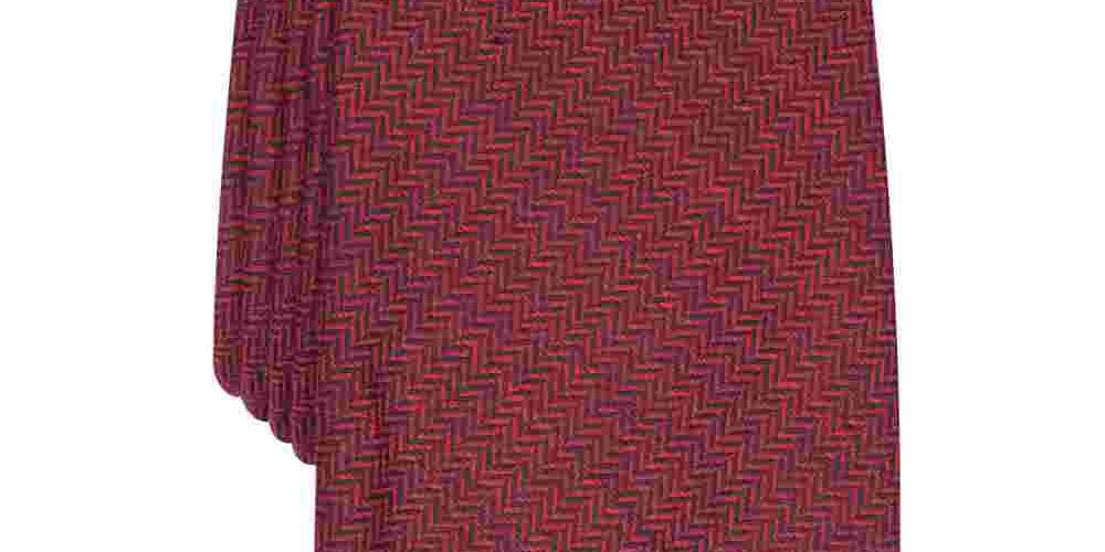 Gravata clássica espinha de peixe masculina Tasso Elba vermelha tamanho regular