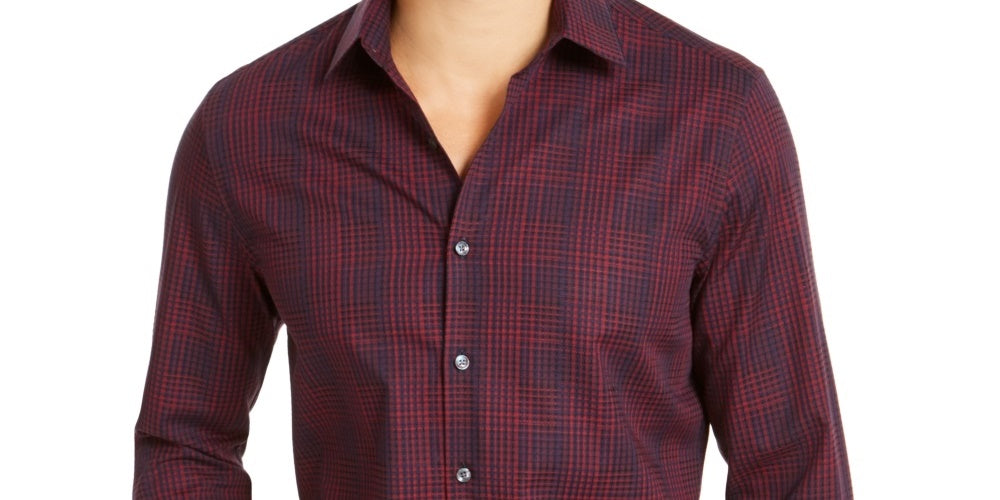 Camisa masculina Tasso Elba Stretch Dobby Woven, tamanho médio, azul marinho