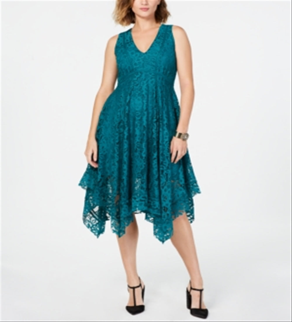 Vestido midi de renda com decote em V Taylor feminino, verde, tamanho 6
