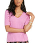 Blusa feminina Thalia Sodi com mangas abotoadas e decote em V, rosa, tamanho grande