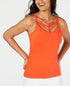 Regata feminina Thalia Sodi com acabamento em escada, laranja, tamanho médio