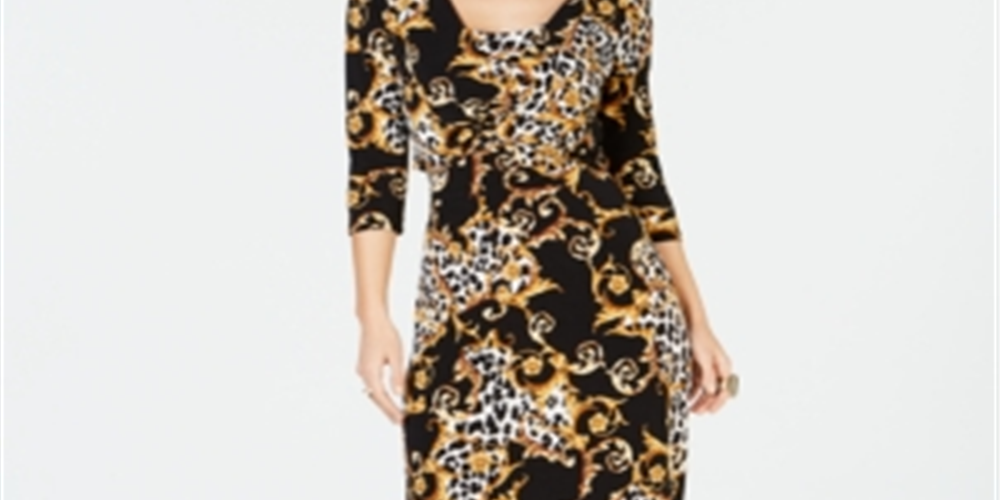 O vestido elástico estampado de Thalia Sodi exibe um visual fabuloso com silhueta elegante e detalhes de elos de corrente