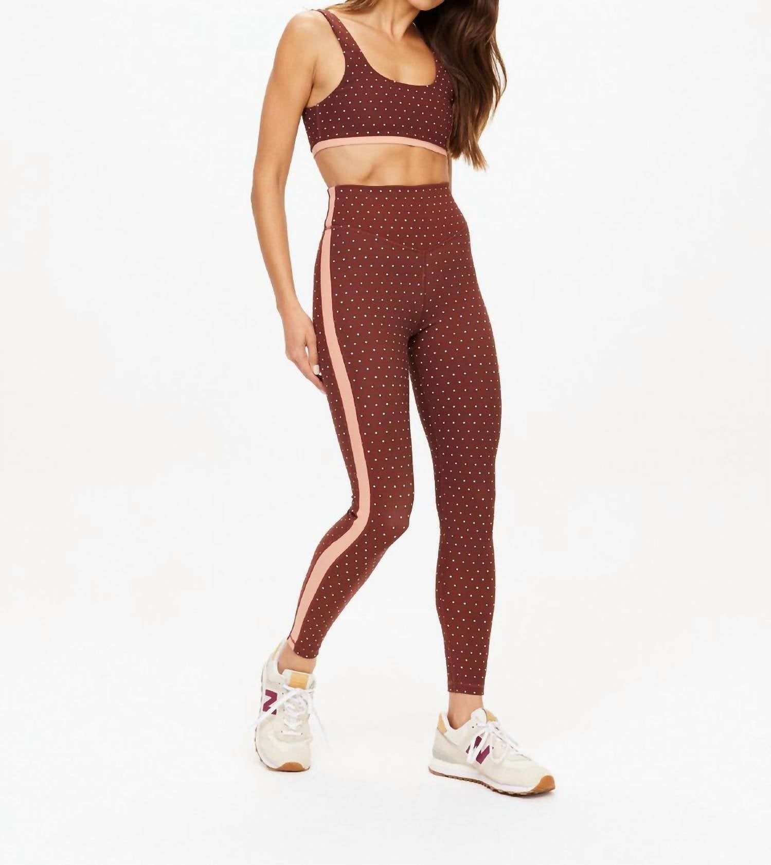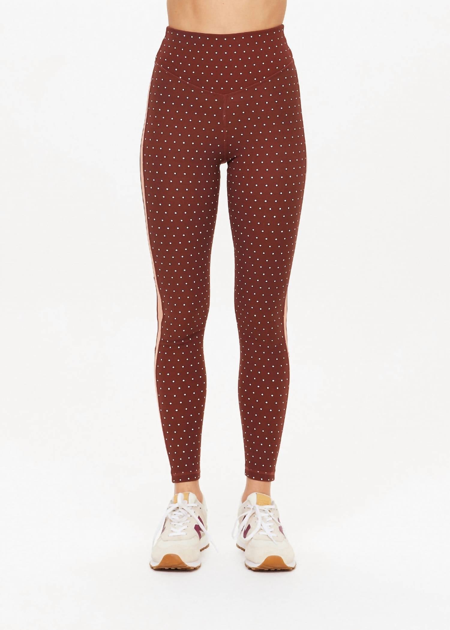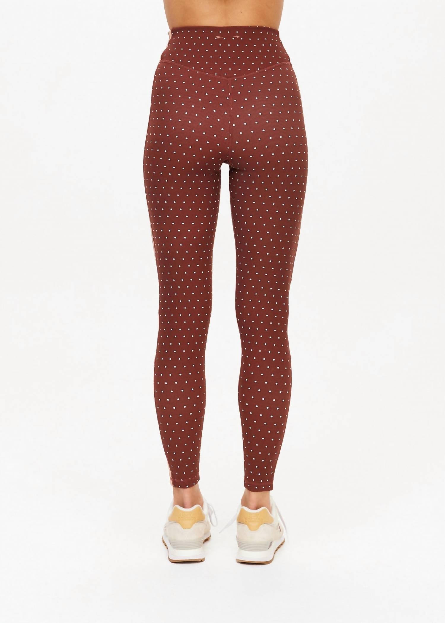 Você vai querer usar essa legging campeã de vendas durante toda a temporada. Apresentamos a Legging Maho Midi da THE UPSIDE, criada para trazer estilo e conforto à sua coleção de roupas esportivas. Esta legging feminina de cintura alta apresenta cós em V e perna skinny, confeccionada em poliamida reciclada macia com um alegre padrão de bolinhas. O painel contrastante e o bordado exclusivo com o logotipo da seta adicionam um toque único, enquanto o design pull-on garante facilidade de uso. Instruções de cuidado incluem lavagem à máquina e secagem no varal.