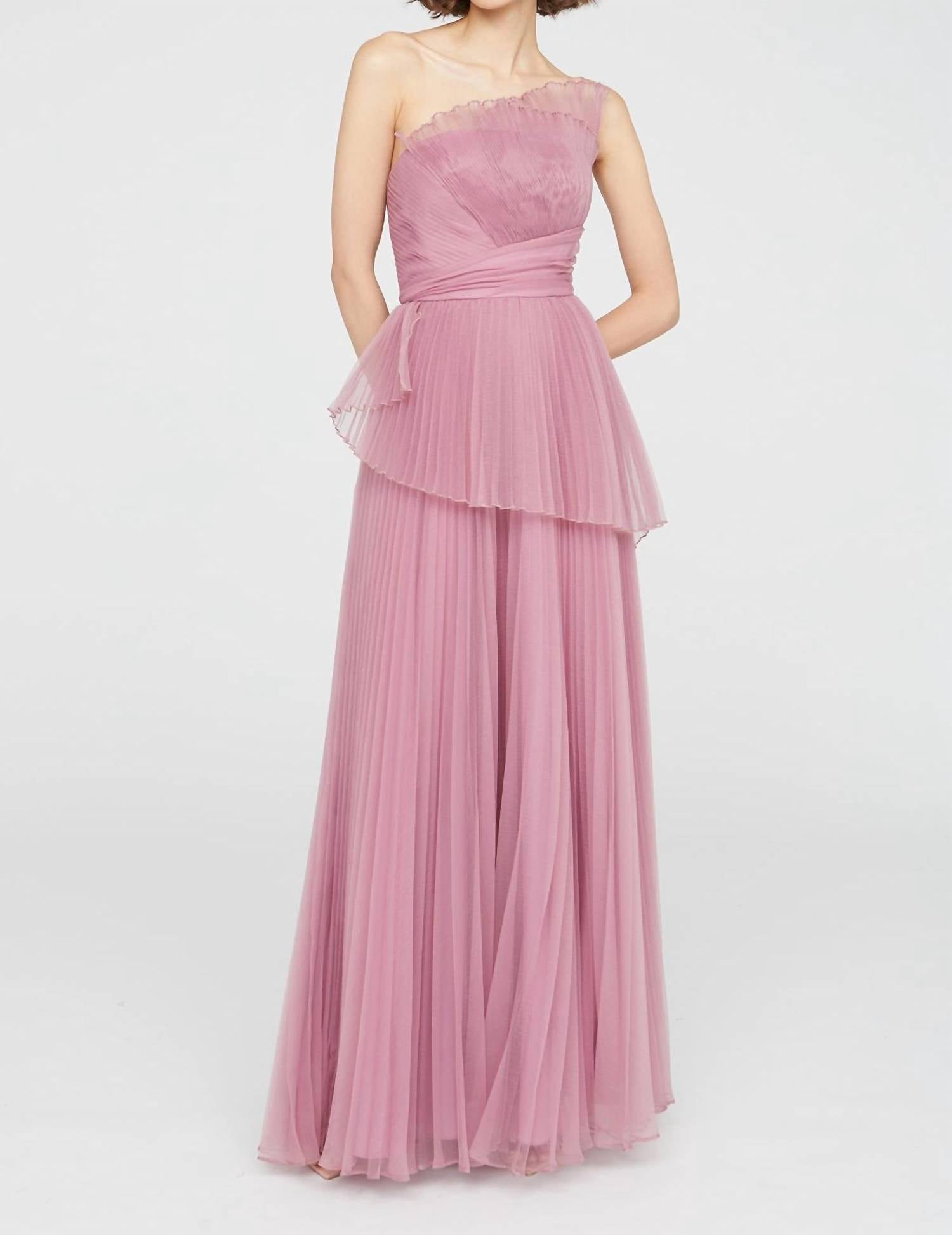 Introducing the Women's Delphine Pleated Dress by THEIA, a stunning choice for any vacation wardrobe. This sleeveless maxi dress in a dusk hue offers a textured, off-the-shoulder design perfect for summer occasions. The A-line silhouette ensures a flattering fit, tailored for women who appreciate a maximalist trend. With a convenient pull-on closure, this dress requires dry cleaning to maintain its exquisite fabric and vibrant color.