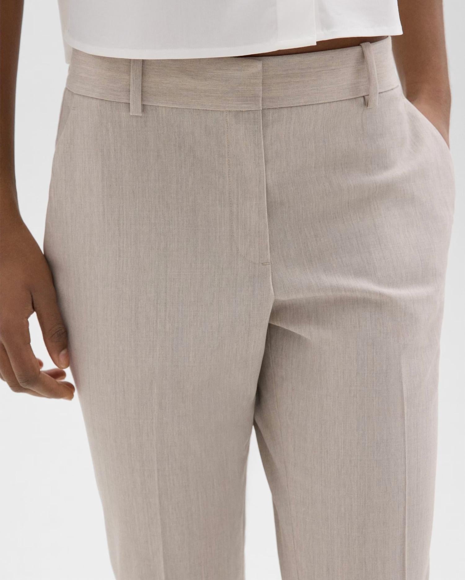 Elevate your wardrobe with the Treeca Pant in Good Wool by Theory, crafted to offer a flattering slim profile with its straight leg design. Made from a luxurious wool blend, these pants come in a sophisticated mink color to seamlessly complement any ensemble. The hook and eye closure provide a sleek finish, and functional side slip pockets along with buttoned welt back pockets enhance practicality. Care instructions are not provided, ensuring you have a timeless piece for any sleek silhouette look.