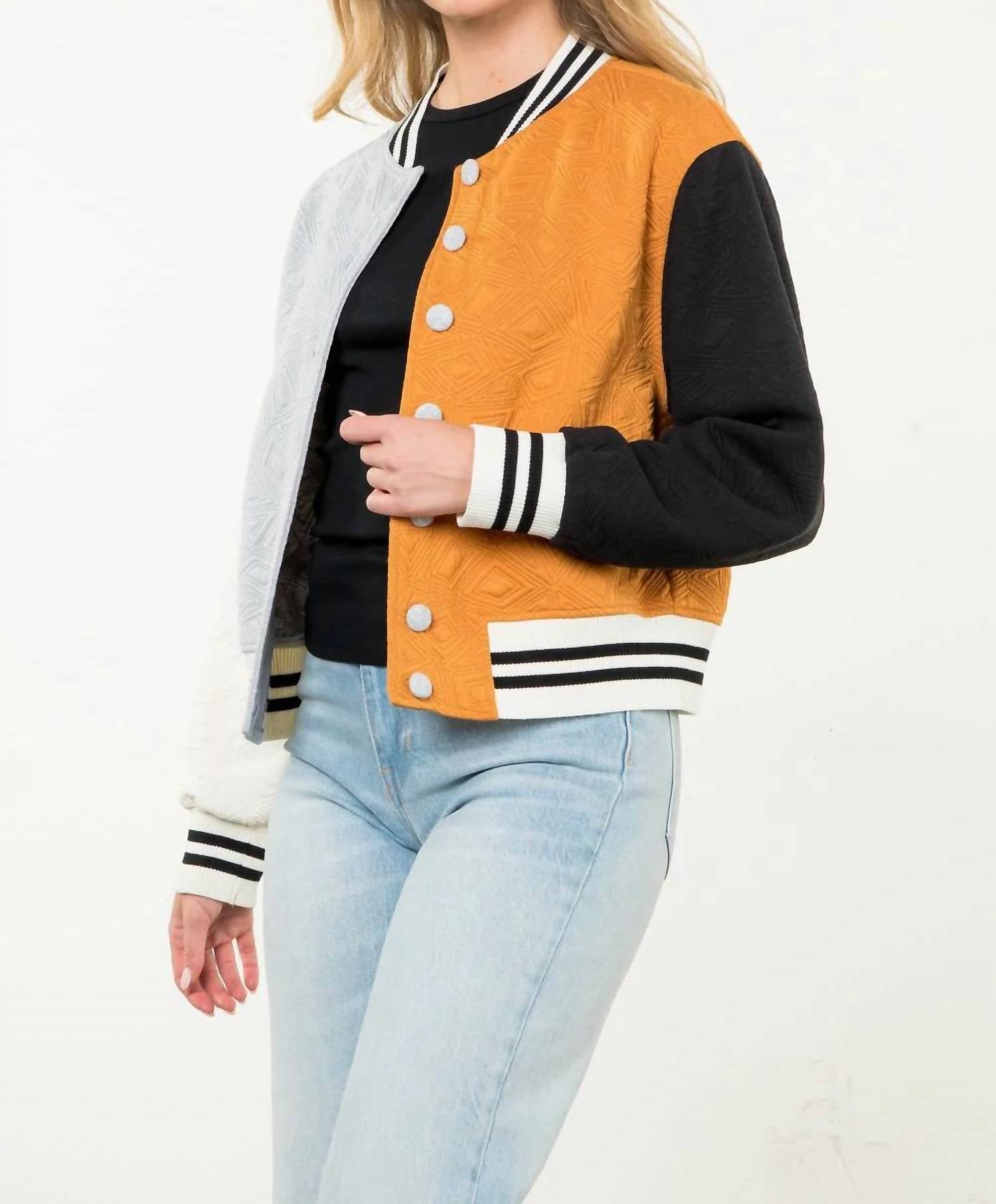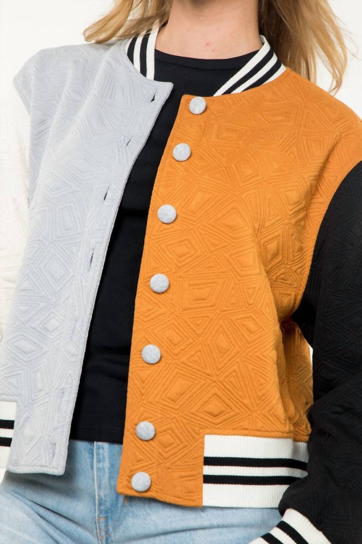 A jaqueta universitária é uma tendência que não vai desaparecer tão cedo e nós estamos aqui para isso! Mantenha-se confortável e estilosa nesta temporada com a Jaqueta Colorblock Button Up da THML, um item essencial para a moda de outono. Esta jaqueta universitária feminina apresenta mangas compridas e um padrão texturizado em uma paleta de cores laranja e neutras. Confeccionada em poliéster durável, possui gola redonda clássica e um prático fecho de botão para um toque especial. Orgulhosamente fabricada nos EUA, é a escolha perfeita para abraçar o frio do outono.