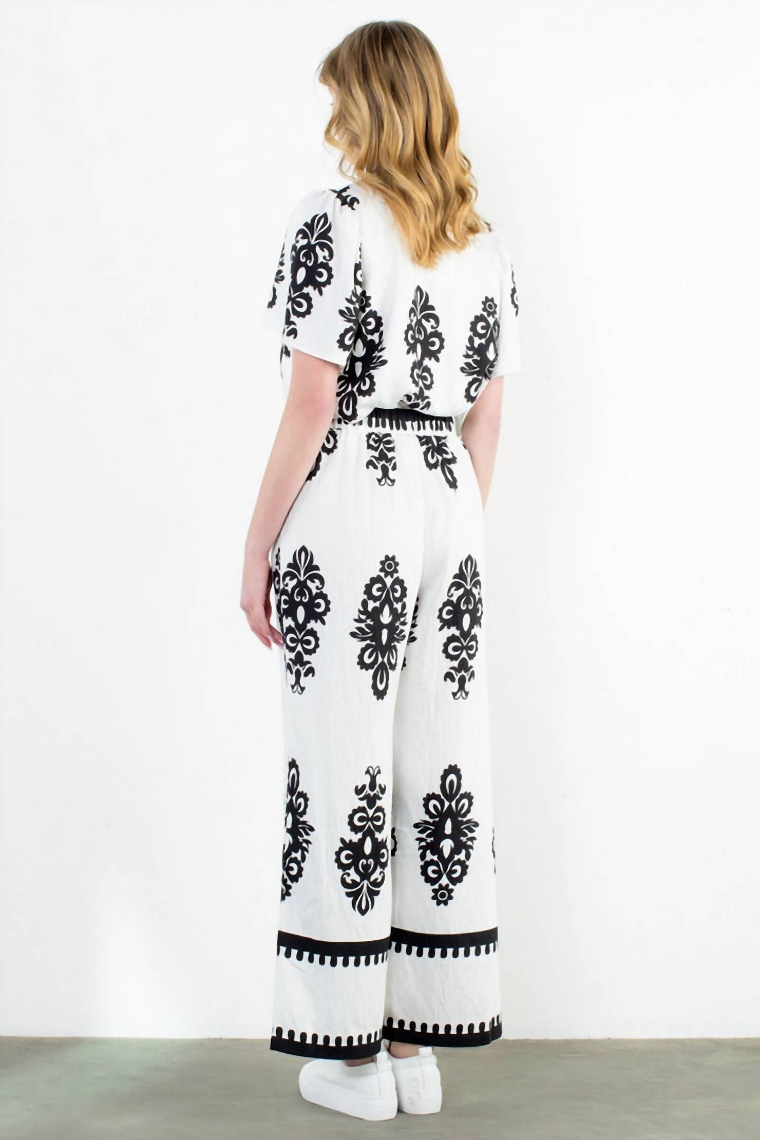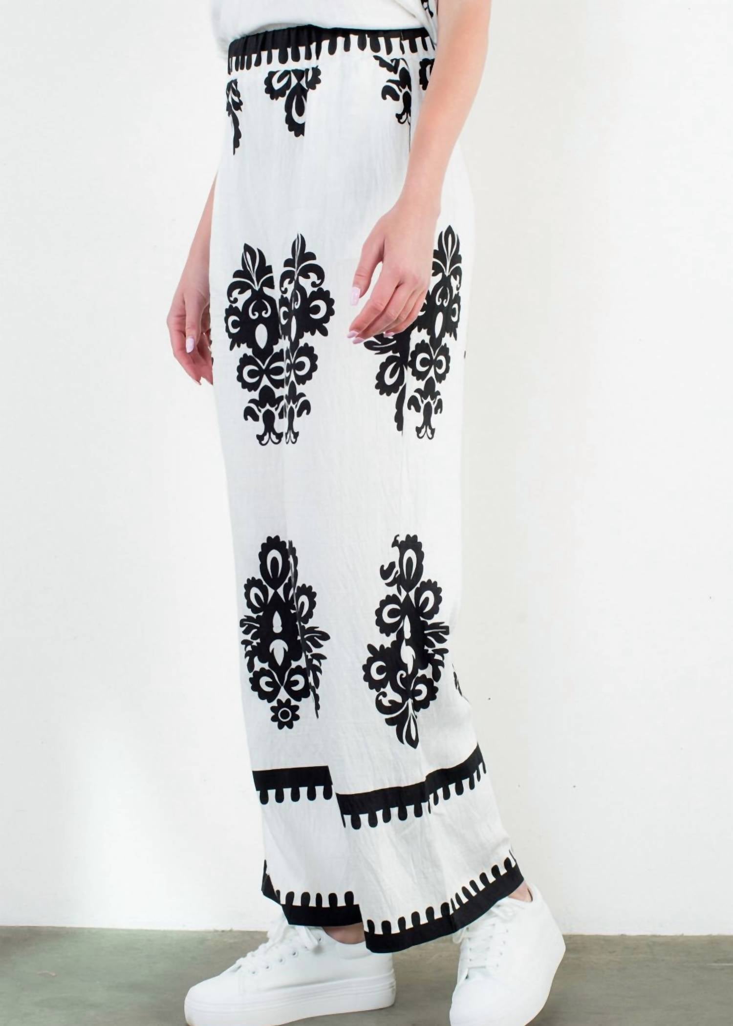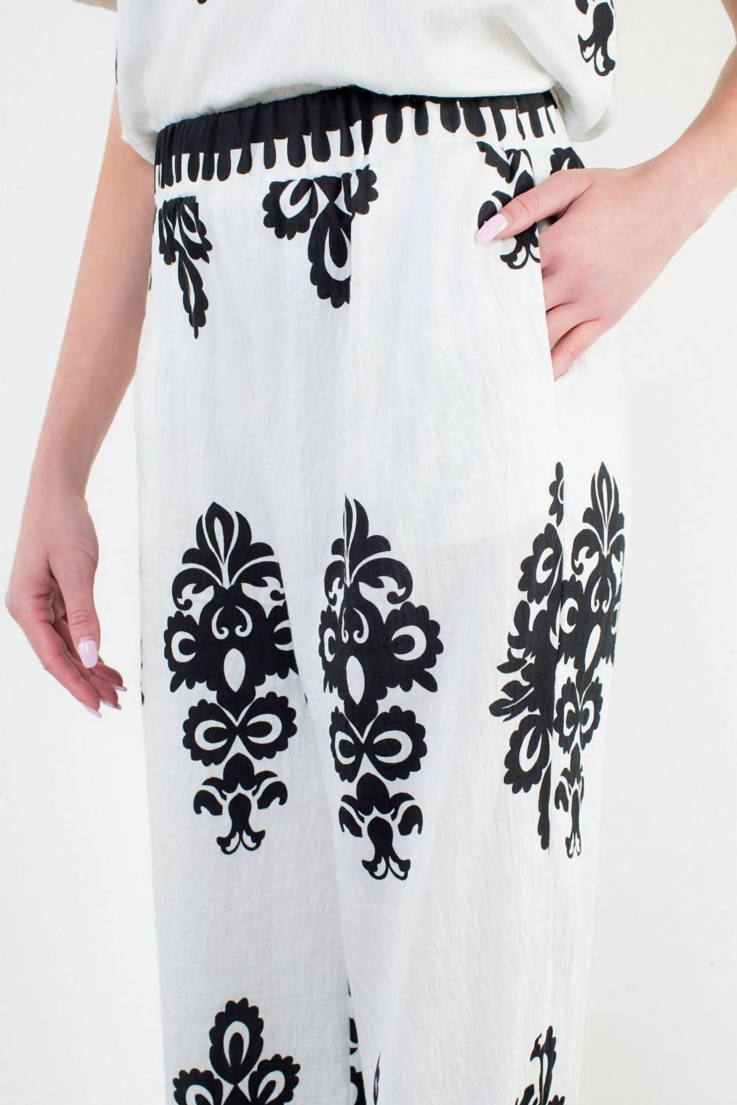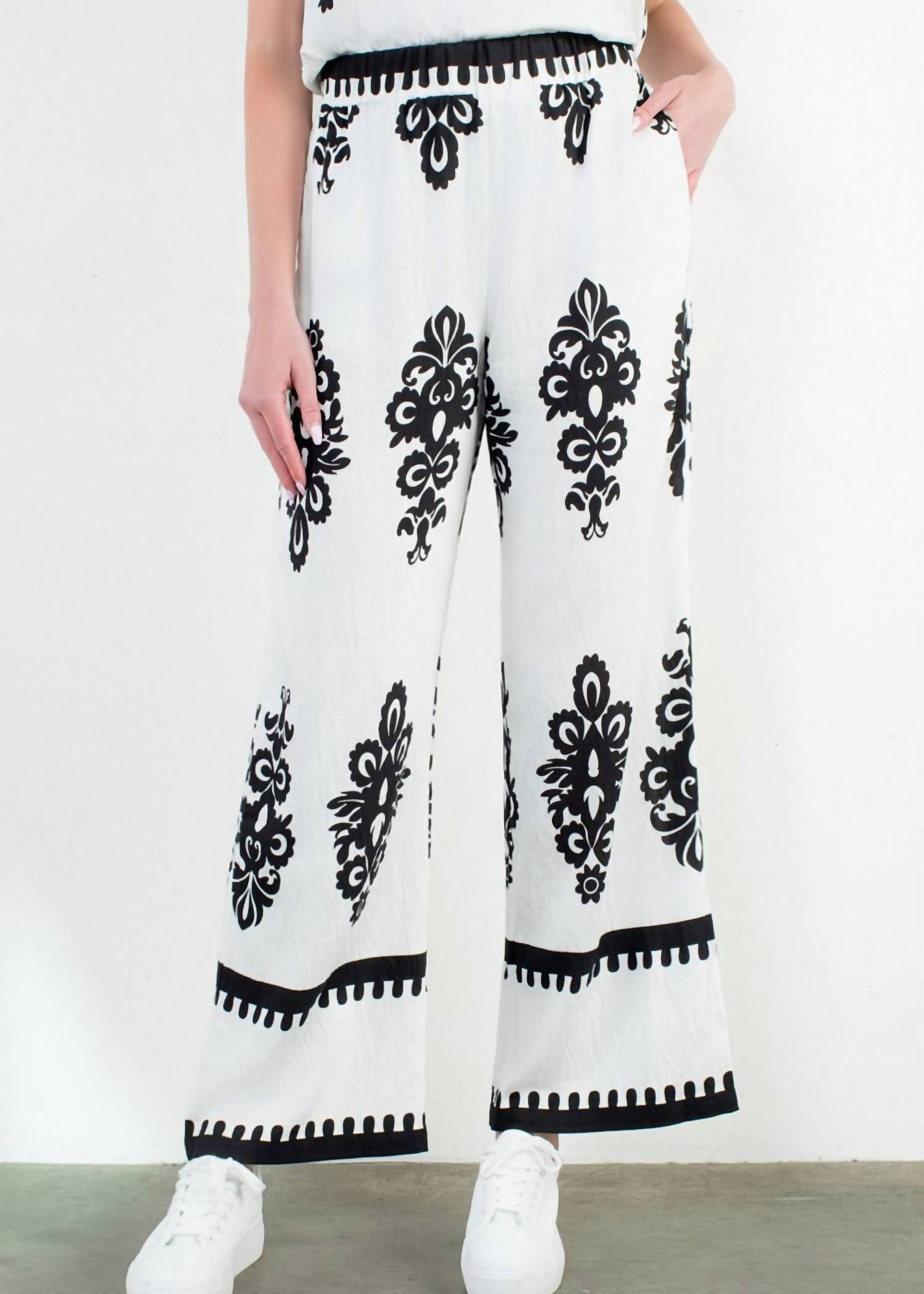 Eleve seu guarda-roupa de verão com a Calça Estampada de Perna Larga THML, criada para um toque boho chique e perfeita para as festas de Páscoa. Com um caimento confortável, esta calça estampada é confeccionada nos EUA com uma mistura de 83% rayon e 17% nylon. O fecho casual e os bolsos práticos facilitam o uso, acentuando a silhueta de perna larga. Abrace a temporada festiva com estilo com esta calça branca marcante.
