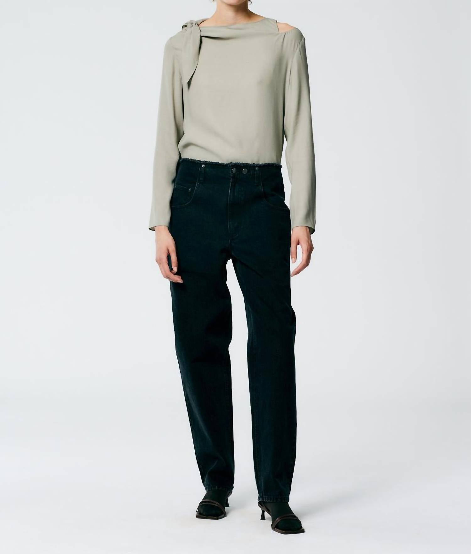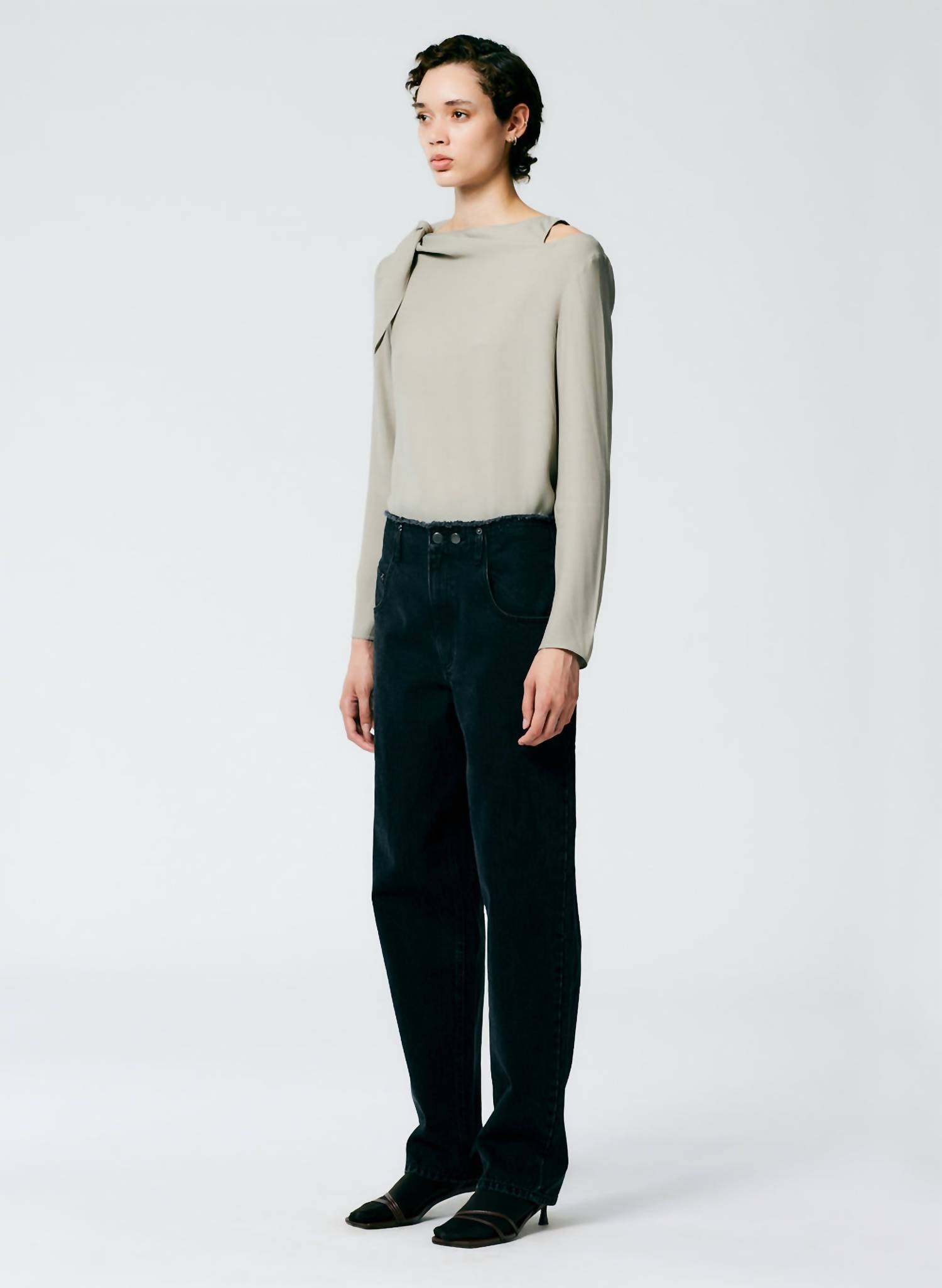 This denim jean offers a modern take on 90s style, featuring a clean finish with a subtle frayed waistband for added edge. Crafted from high-quality Japanese denim with a stonewashed finish, it features a low-rise fit that sits just above the hips and tapers to a slim leg opening. The straight, tapered silhouette pairs effortlessly with relaxed tops or slim knits for a balanced, contemporary look. Made from 99% cotton and 1% elastane, it offers structure with a touch of stretch for comfort.