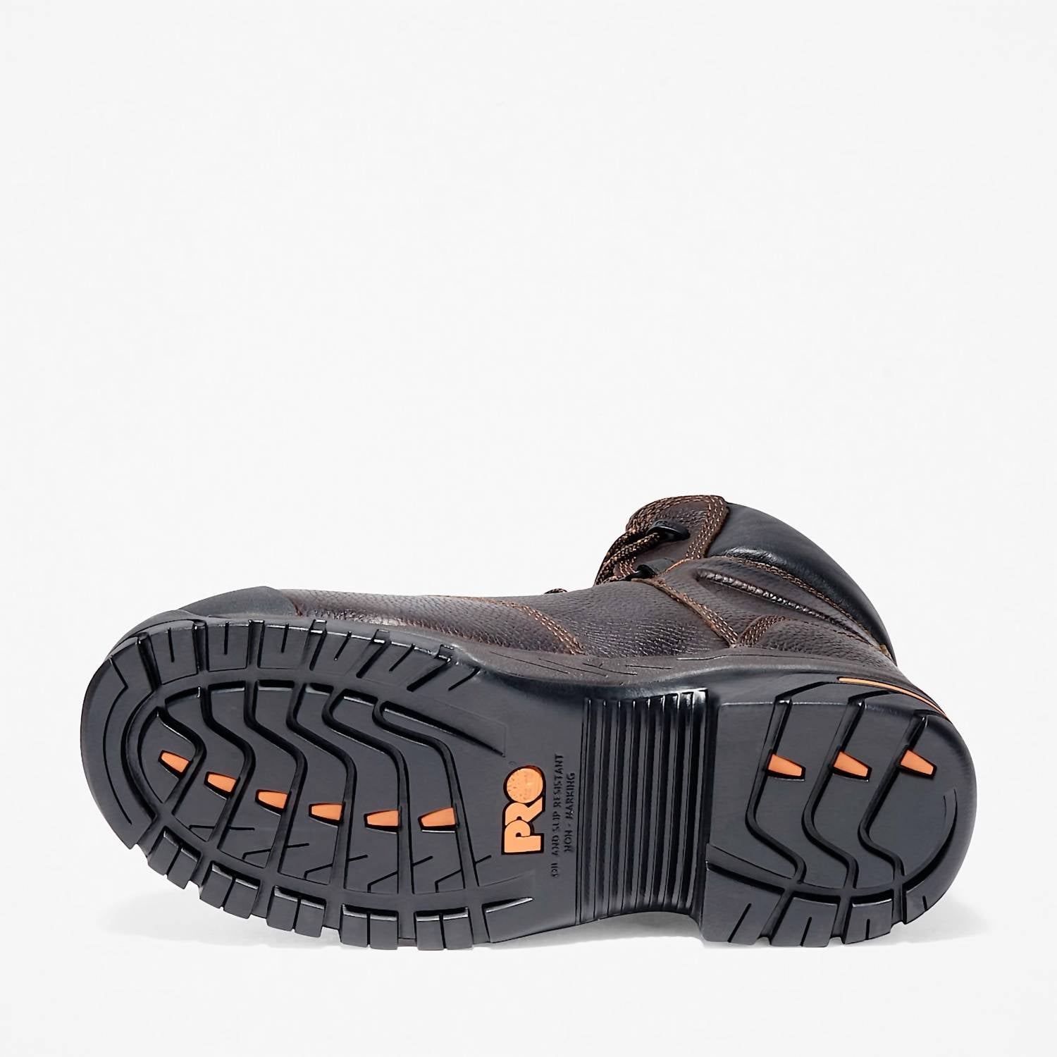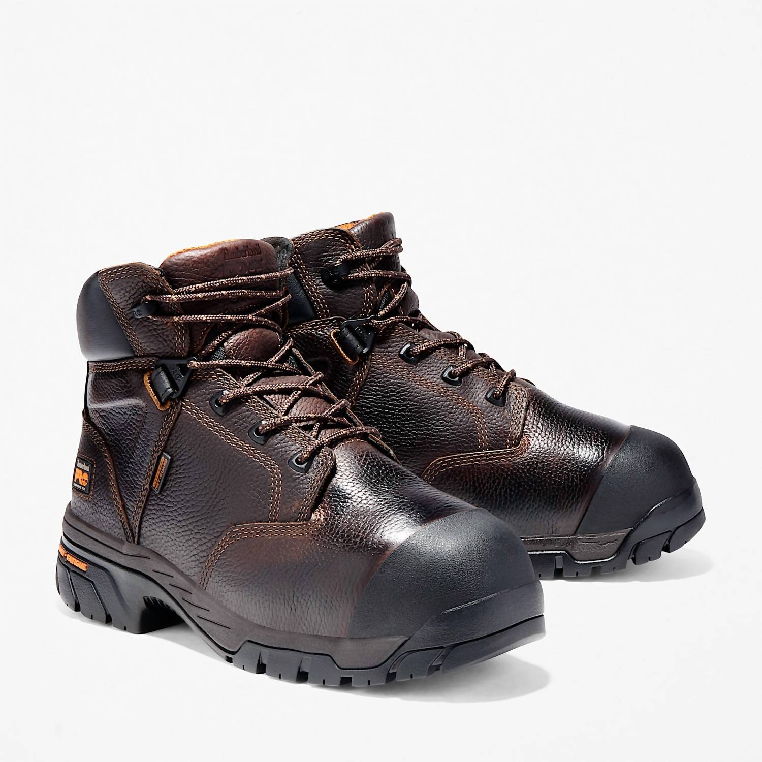 Elevate your work gear with the Men's Helix 6" Interna Work Boot by Timberland, crafted from premium full-grain leather for durability. This brown boot features a unique asymmetrical composite safety toe and Timberland PRO® rubber toe for enhanced protection. Designed for comfort, it incorporates Anti-Fatigue Technology with a high-rebound polyurethane and rubber footbed, alongside a metatarsal guard. Imported and crafted with a breathable, moisture-wicking lining, this boot ensures all-day comfort and hygiene, while the active heel lock lacing system offers a personalized fit.