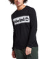 Camiseta masculina Timberland com estampa de logotipo linear e manga comprida, preta, tamanho extragrande