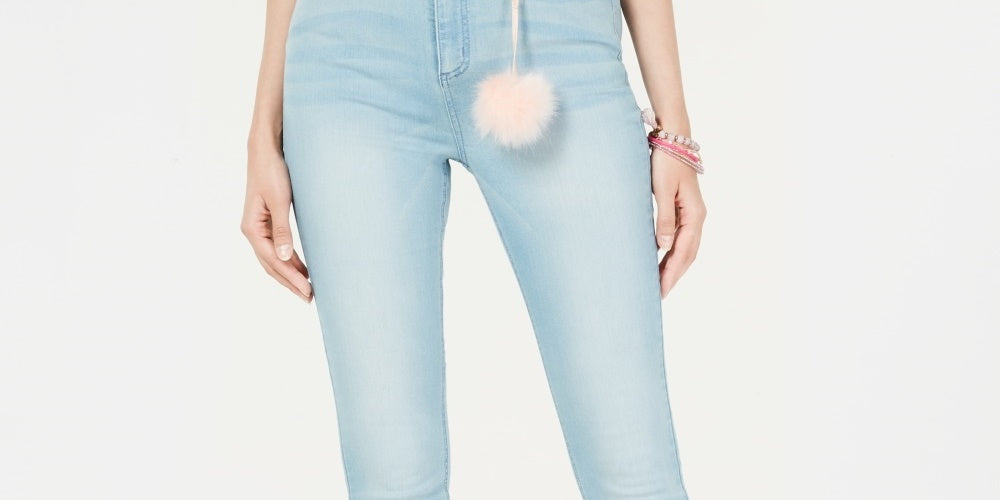 Cintura alta; ajuste fino nos quadris e coxas; perna skinny | Costura interna aproximada: 27 pol. | Fecho de botão frontal com zíper; passantes para cinto | Estilo com cinco bolsos; dois bolsos traseiros | Pompom de pressão incluído; a cor pode variar | Lavagem colorida