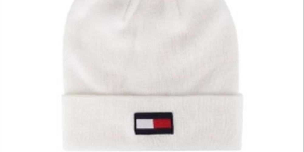 mantenha seu visual casual | descolado e realmente elegante com o gorro com remendo de bandeira e pompom bicolor da tommy hilfiger