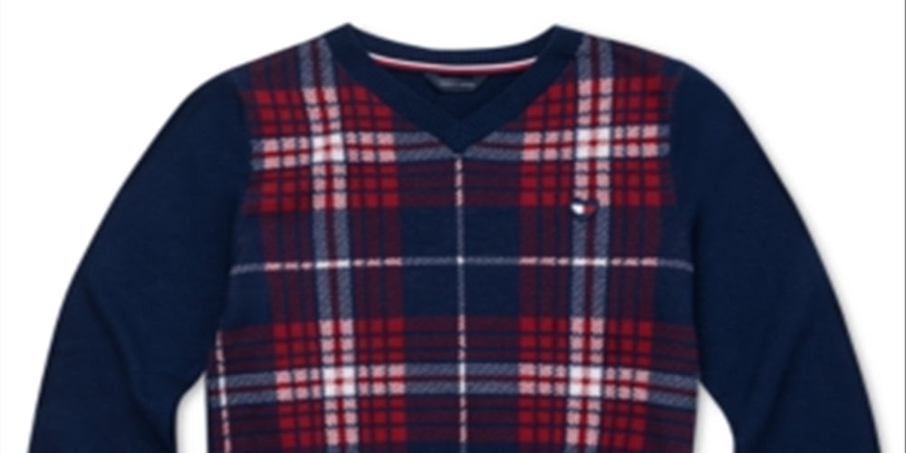 lindo e elegante! Este adorável suéter xadrez da Tommy Hilfiger é tão fofo com uma bainha peplum contrastante