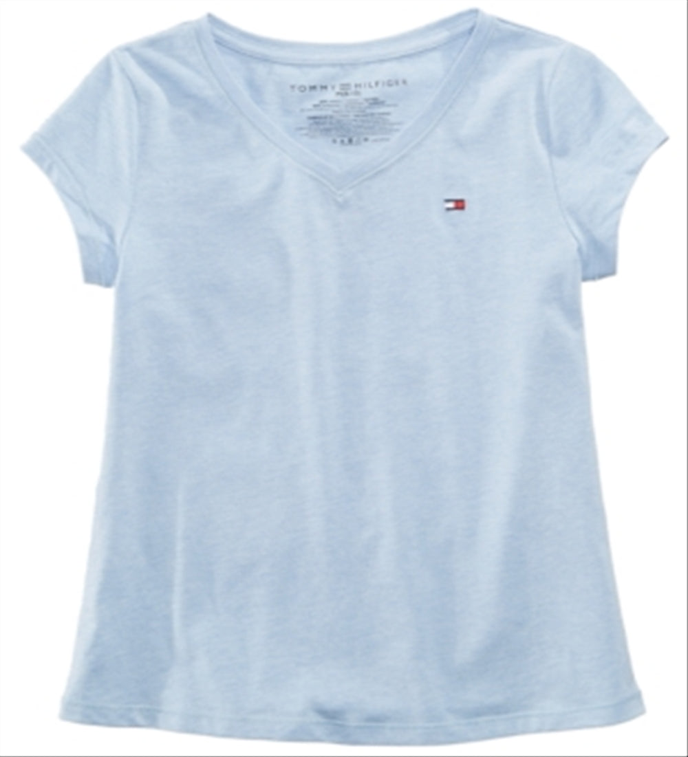 camiseta tommy hilfiger de algodão com gola V para meninas grandes, roupas infantis - camisas e camisetas