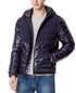 Jaqueta acolchoada com capuz Tommy Hilfiger Chevron Colorblock masculina, azul, tamanho pequeno