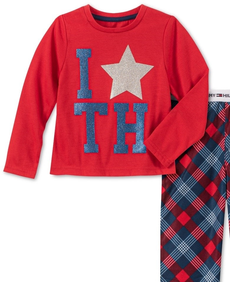 Blusa: gola redonda; estampa gráfica na frente | Calça: cós elástico com logo | Poliéster | Lavável na máquina | Importado