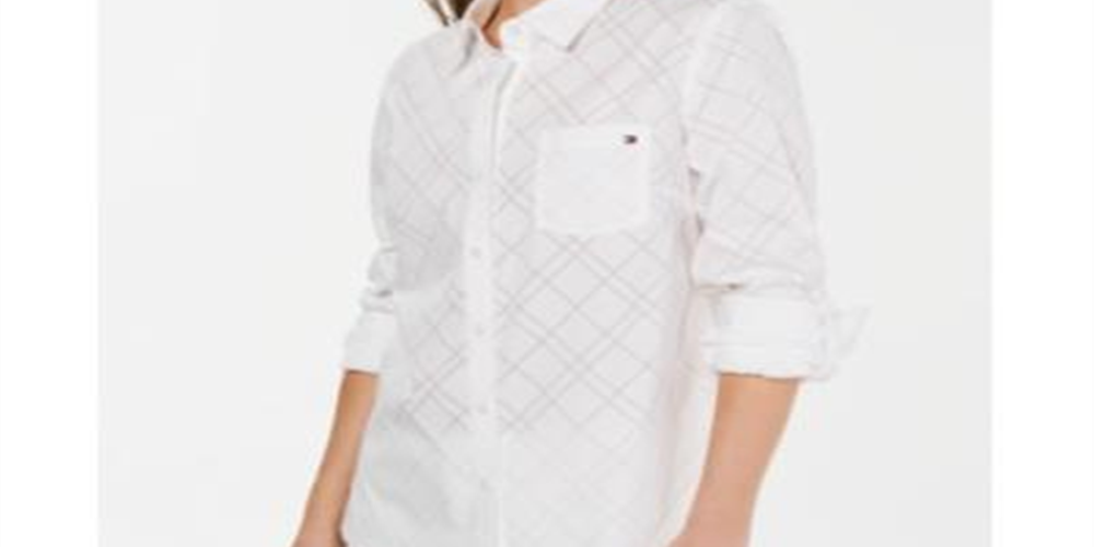Camisa Tommy Hilfiger Burnout Feminina com Botões, Branca, Tamanho P