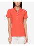 Tommy Hilfiger Blusa Feminina Manga Curta com Botões e Gola Vermelha Tamanho Médio